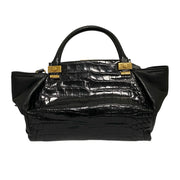 2 Handles,w/Removable Adjustable Strap, Push Latch Closure, Gold Hardware